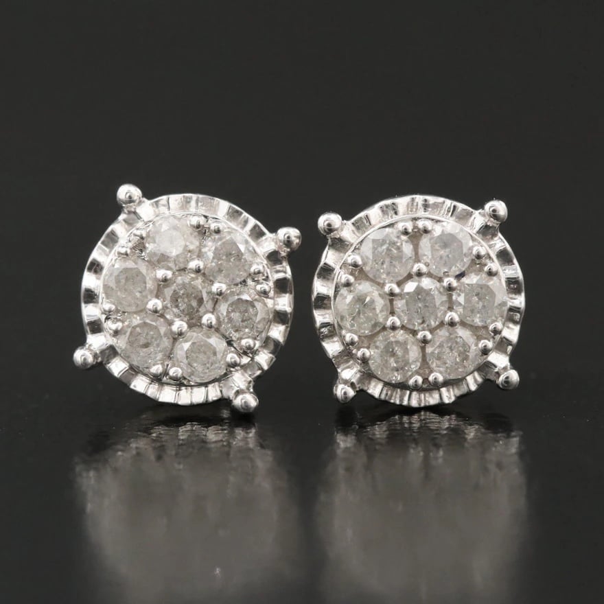 Each earring has 7 diamonds for a total carat weight of 1/4 carat.