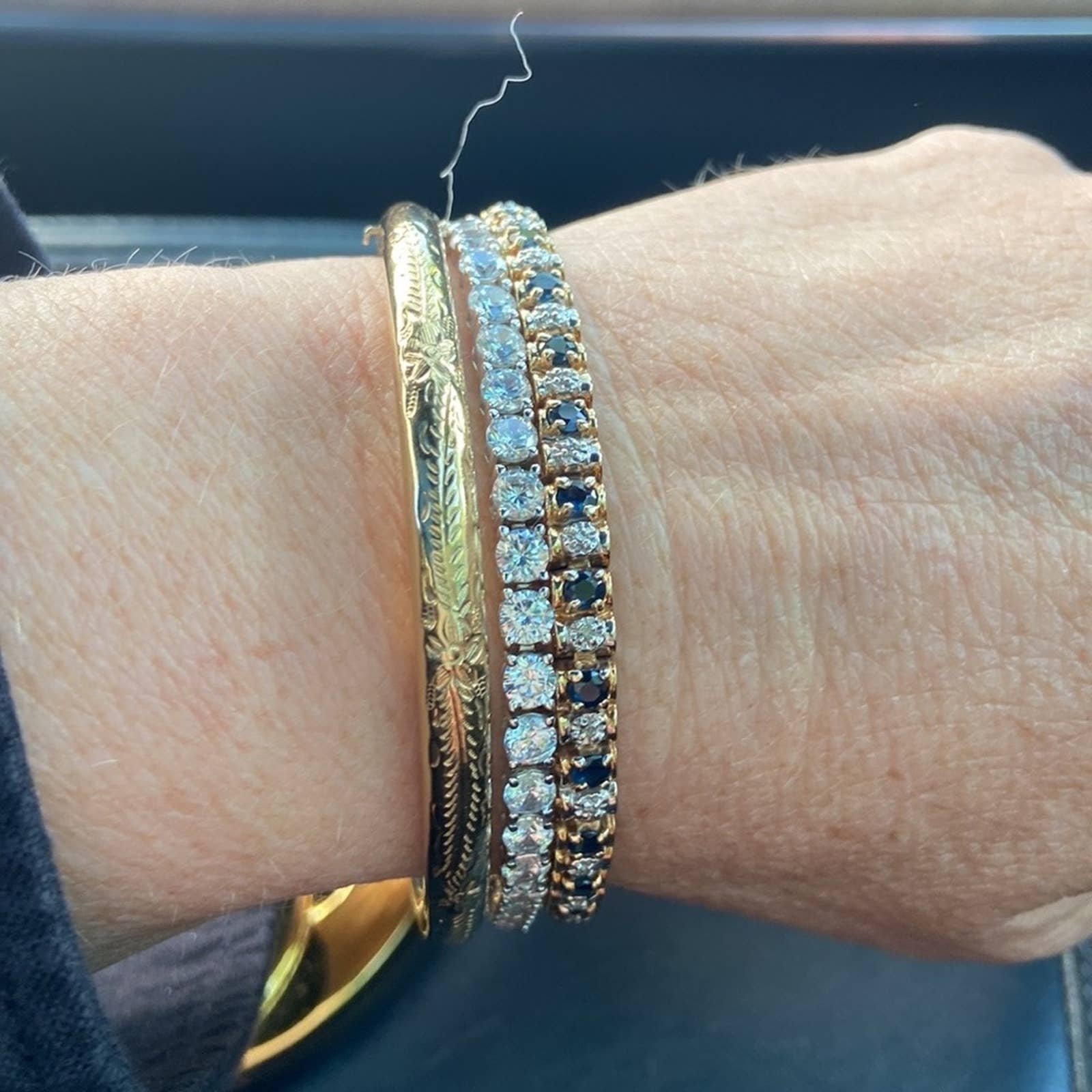 PLEASE NOTE ONLY THE BLUE AND WHITE BRACELET ONTGE RGHT SIDE W/ the 3 is for sale. I did that to show stacking !