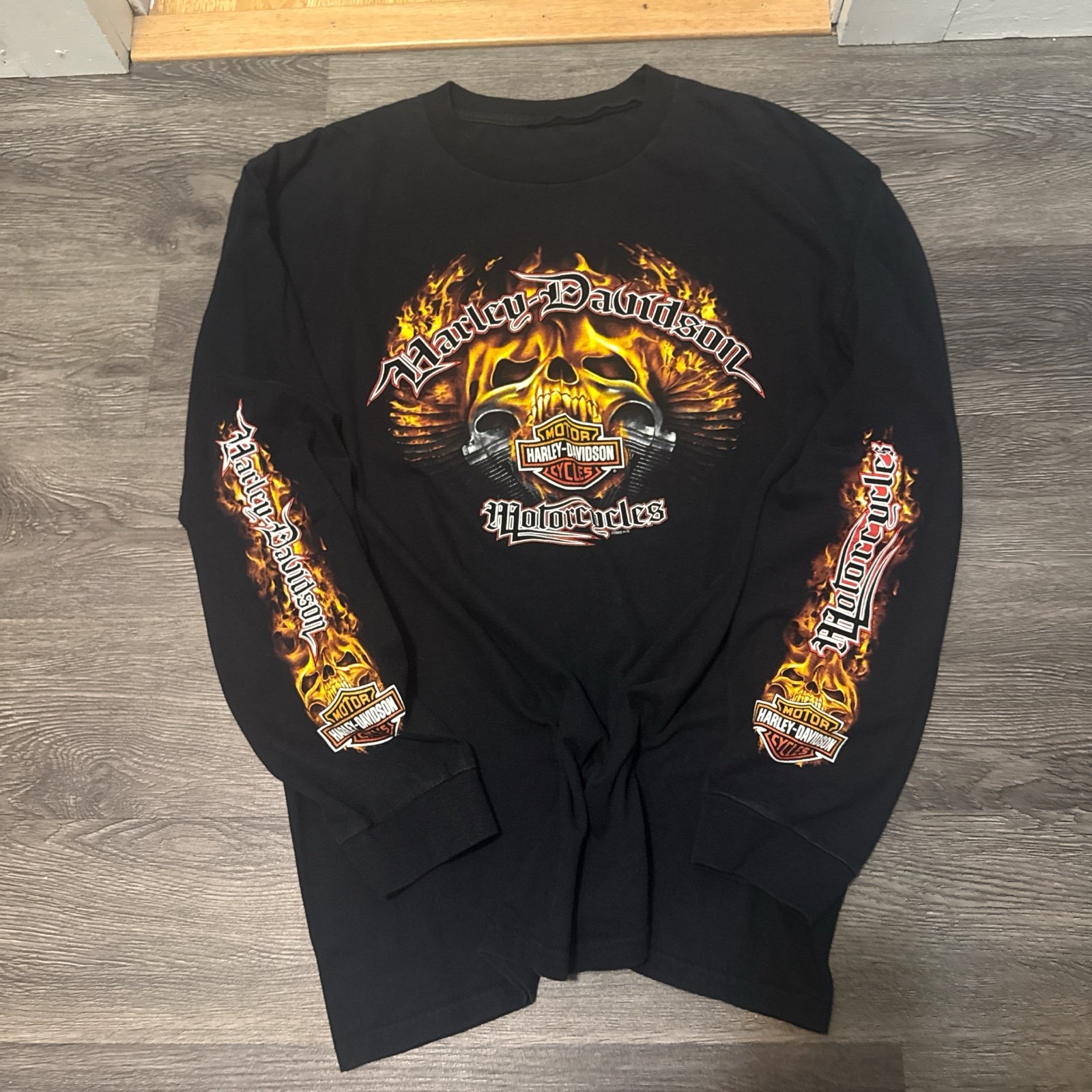 2008 Harley Davidson Long Sleeve Flames Skull Faded amazing Look & Fit measurements in photos fits me XL