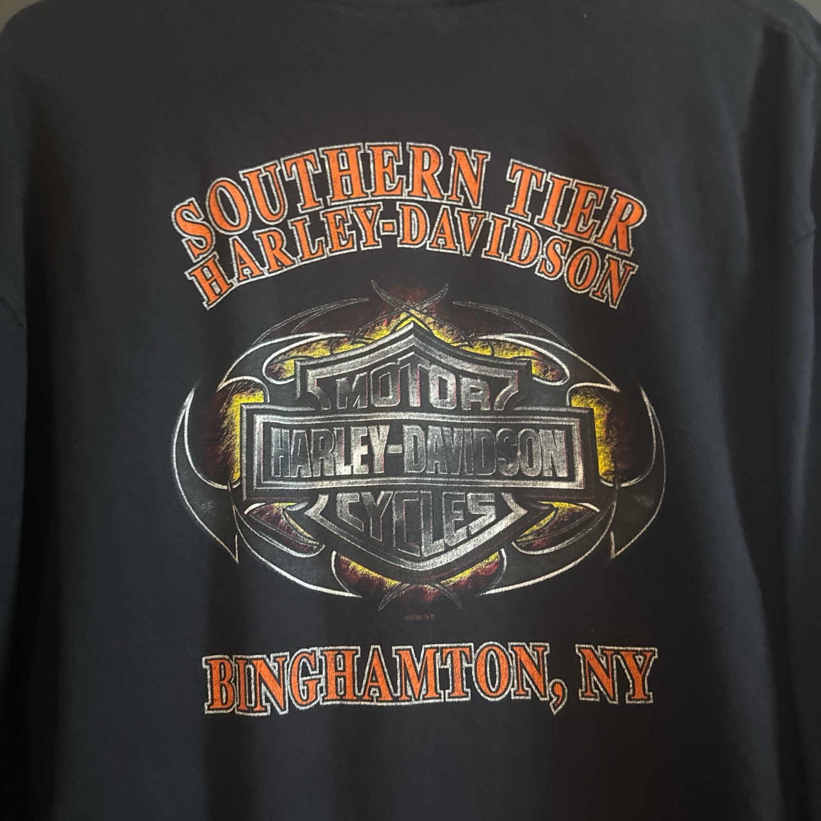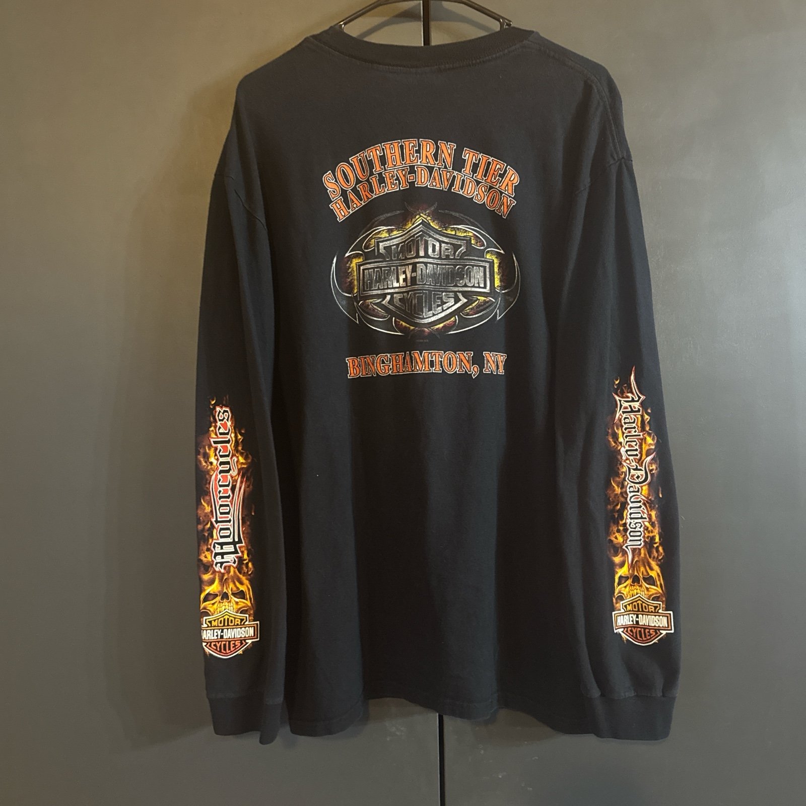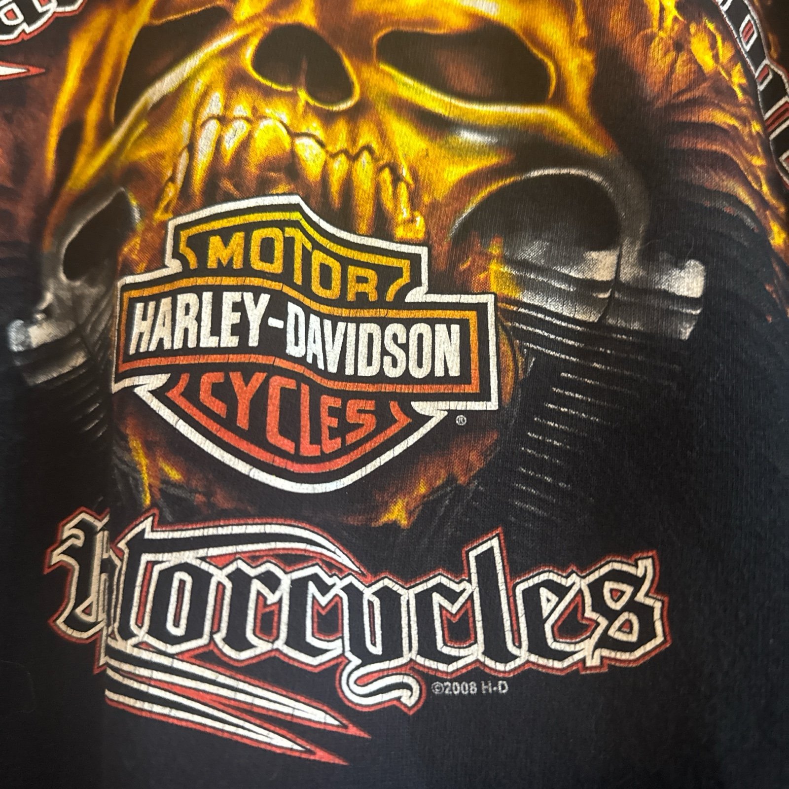 Vintage 2008 Y2K Harley Davidson Flames Skull Shirt Long Sleeve Motorcycle Nice